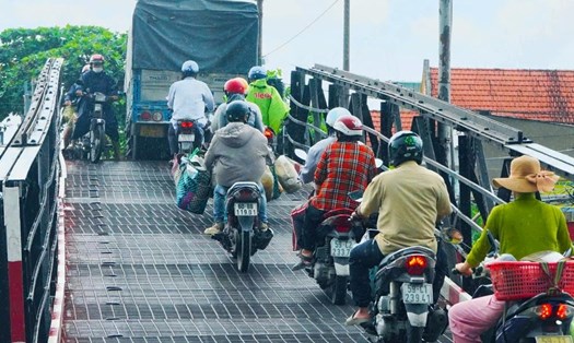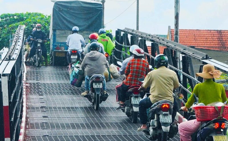 While waiting for the Ba Hom Bridge to be completed, residents in the area have to travel across two temporary iron bridges. However, with the large number of vehicles traveling every day, many residents are concerned about the safety of the temporary bridge each time they cross it.