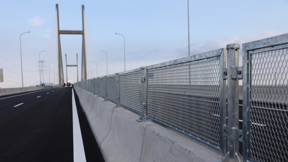 Currently, the bridge has been basically completed. Items such as asphalt pavement, median strip, railings, lighting system, traffic signs and fire prevention and fighting are being urgently completed.