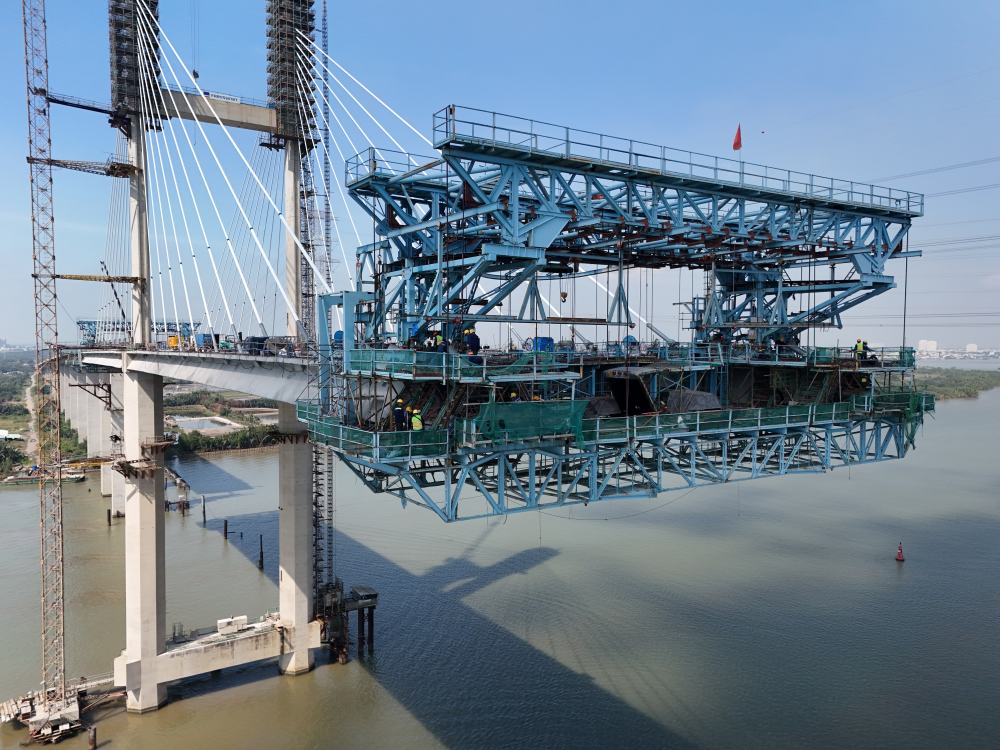 Phuoc Khanh bridge spans the Long Tau River, connecting Binh Khanh commune (HCMC) with Dai Phuoc commune (Dong Nai). The bridge has a total length of 3,186 m, a width of nearly 22 m, a scale of 4 lanes, and a design speed of 100 km/h. The technical highlight of the project is the main span 300 m long with a navigation clearance of 55 m - the highest in Vietnam today.