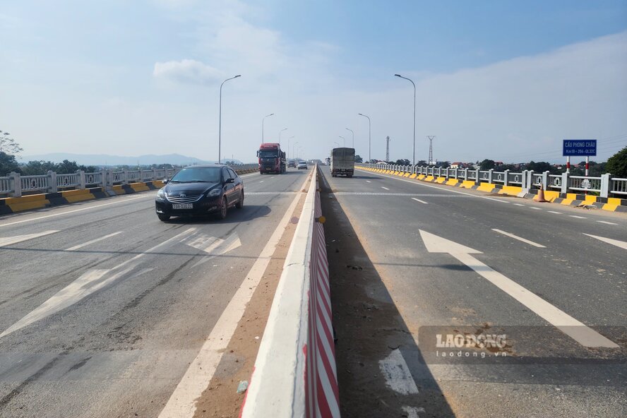 Returning to Phong Chau bridge after 100 days of the project being inaugurated, Lao Dong Newspaper reporters noted that at this time, a large number of vehicles on National Highway 32C are traveling through the bridge. With a bridge width of up to 20.5m, including 4 lanes for motorized vehicles and 2 lanes for rudimentary vehicles, people's travel is always ensured smooth.
