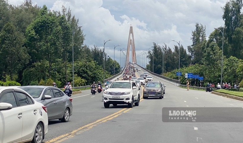 Captain Tran Nguyen Viet Thai - Deputy Head of the Traffic Police - Order Team of Chau Thanh District Police (Ben Tre Province) - said that today, people from the Western provinces returned to Ho Chi Minh City or provinces and cities in the Southeast region to work. Therefore, the traffic volume through Rach Mieu Bridge was very high, causing congestion. Faced with this situation, the Traffic Police of Chau Thanh District Police coordinated with the Traffic Police Department of Ben Tre Province Police to regulate traffic and prevent prolonged congestion in the area.