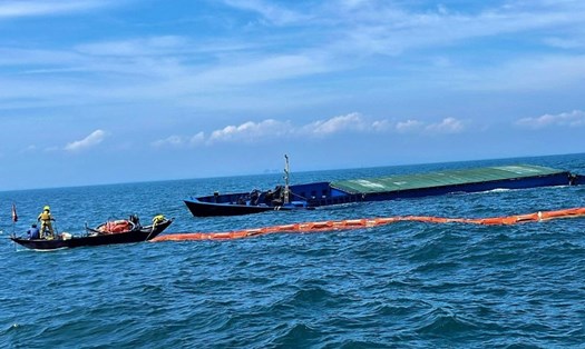 On the afternoon of November 13, Mr. Tran Minh Giang - Vice Chairman of the People's Committee of Tri Ton district (An Giang province) - said that the district leaders are directly urging the functional forces to make efforts to handle the scene of the accident that broke the iron bridge in half in Vinh Phuoc commune in order to promptly deploy the construction of the temporary bridge tomorrow morning.