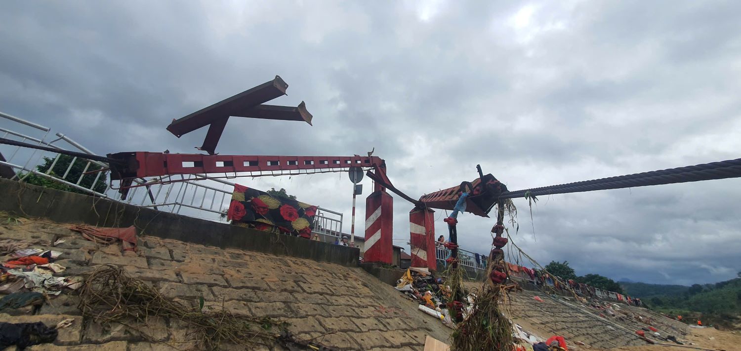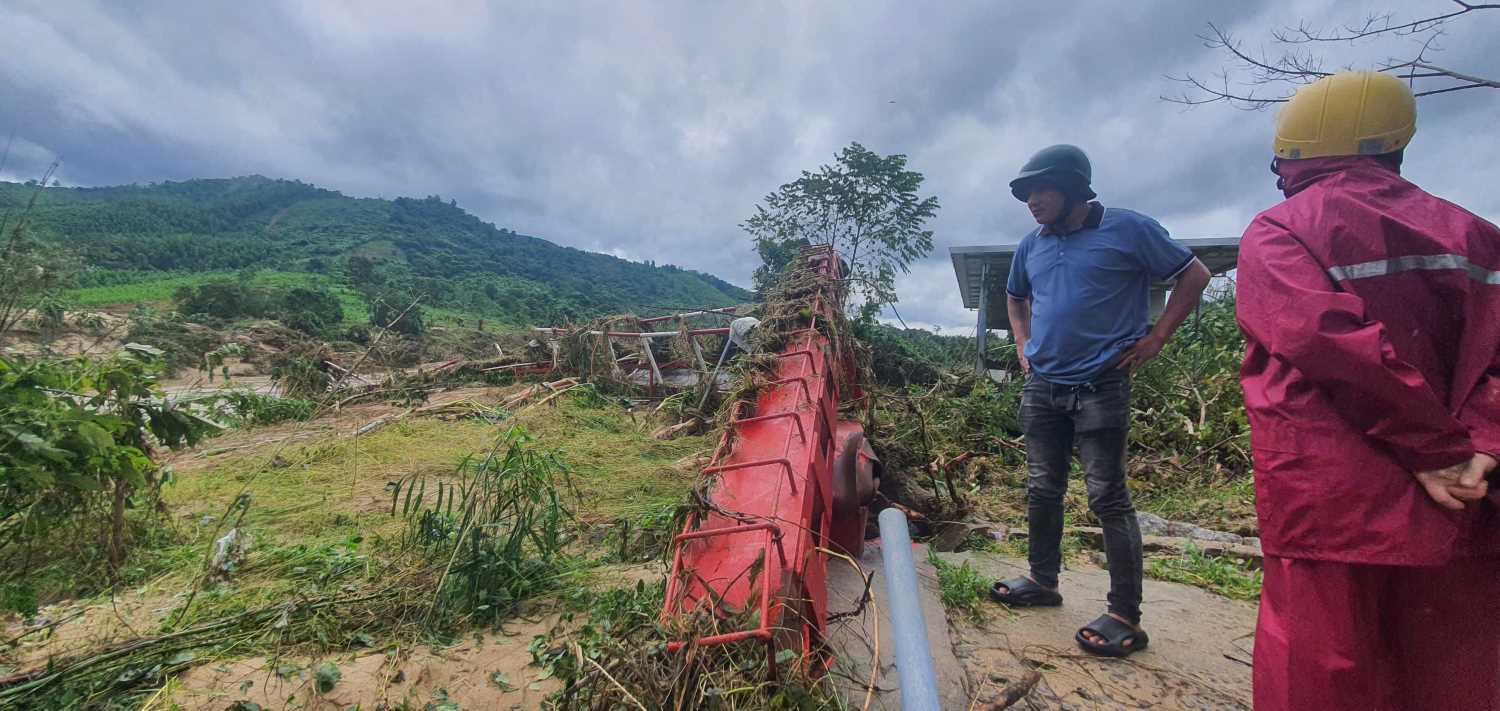 The two main suspension bridges of the commune - Da Trang Bridge and Khanh Nam suspension bridge, connecting the commune center with neighboring areas - were swept away by floodwaters.