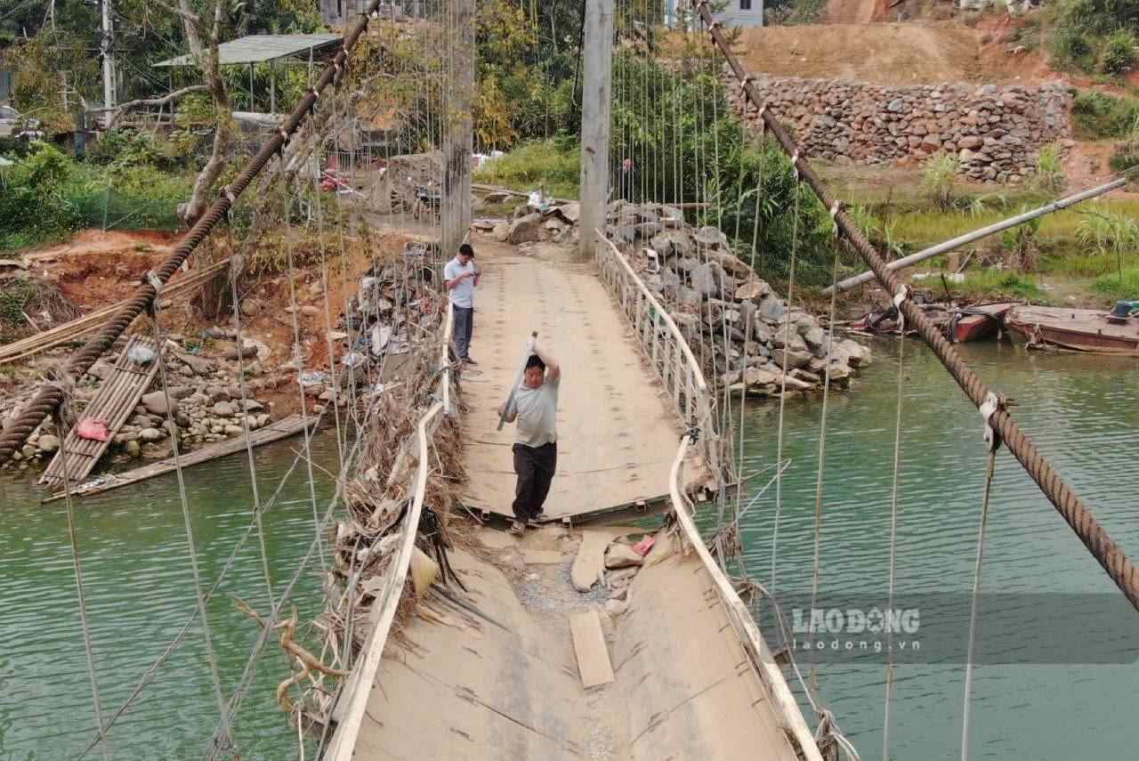 According to Lao Dong's records in early December, the suspension bridge connecting Provincial Road 175 through Ngoi Thia stream to the three villages above was damaged, the bridge piers were broken, weathered, deformed, and did not ensure safety for travel.