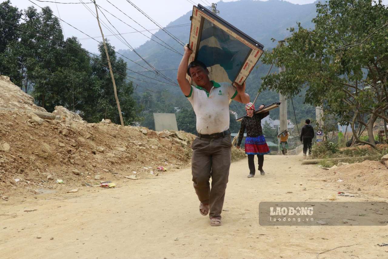 Ms. Song Thi Khua (in Khe Long 2 village, Mo Vang commune) just carried a glass window on her shoulder and said: This is a unique bridge for people to travel on, knowing it is dangerous, but now the house is damaged, without repair and there is no place to live.