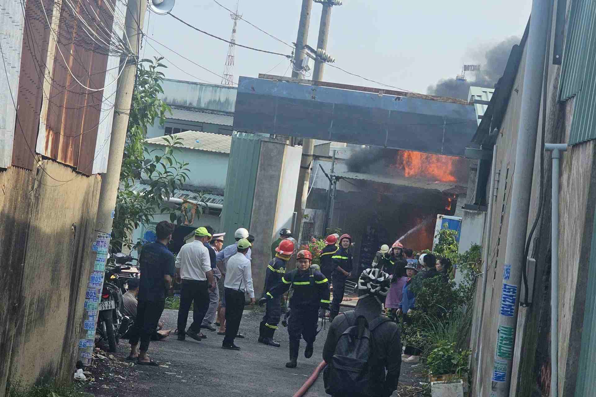 On the afternoon of November 28, the Fire Prevention and Fighting and Rescue Police (PCCC and CNCH) of Ho Chi Minh City Police are trying to control a serious fire that broke out at a warehouse in alley 90 and00, street 100, Tang Nhon Phu ward (formerly Thu Duc City).