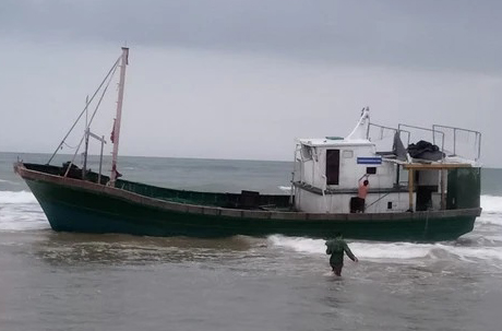 Earlier, at around 7am the same day, people discovered a wooden boat drifting at sea between Dong Luat and Tan Hoa villages (Vinh Thai commune). About 30 minutes later, the boat was washed ashore by waves.