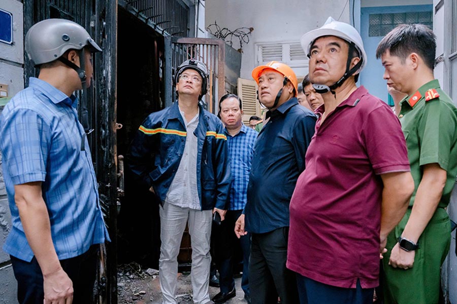 At around 6:15 a.m., the fire was basically completely extinguished. Through search, rescue, and relief, the Fire Prevention and Rescue Police force discovered and coordinated to hand over 5 victims (N.D.L born in 1952; H.T.H born in 1956; N.H.M born in 1982; D.T.S born in 1988; N.M.V born in 2019) who died to the authorities according to regulations.