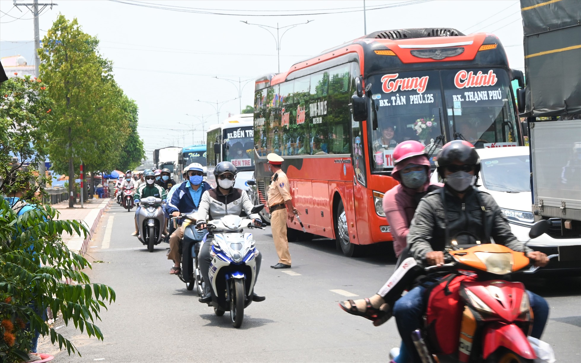 Theo đó, xe gắn máy biển kiểm soát 72AF-020XX do chị T.H.A (sinh năm 2006, ngụ ở Phường 3, quận Tân Bình, TP Hồ Chí Minh) điều khiển, chở theo sau là chị T.N.H.H (sinh năm 2005, ngụ ở xã Tân Hội, huyện Mỏ Cày Nam, tỉnh Bến Tre) lưu thông trên Quốc lộ 60, hướng từ Tiền Giang đi Bến Tre.