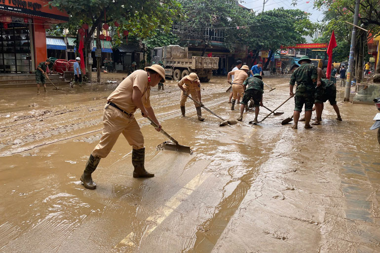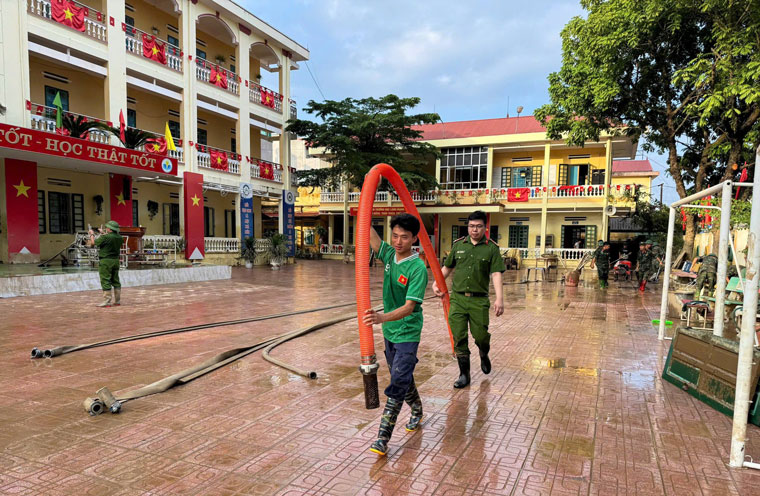 The police force is urgently coordinating with functional units, mobilizing maximum human resources, means, and machinery to promptly overcome the consequences, ensuring that schools can reopen operations as soon as possible.