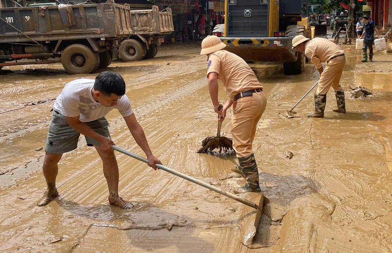 Determining this as a key area, Lao Cai Provincial Police and Yen Bai Ward Police have mobilized hundreds of officers, soldiers, vehicles and specialized machinery to work day and night.
