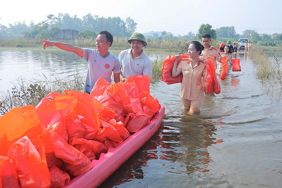 In recent days, the Traffic Police Department of Hanoi City Police has mobilized youth union members and women's union members to proactively coordinate with local authorities to organize relief and support people in Thu Lam, Da Phuc, Trung Gia communes to overcome the consequences and soon stabilize their lives.