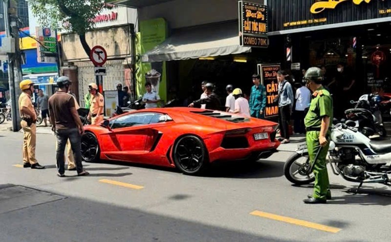 The incident occurred at around 10:55 a.m. on January 16. At that time, Mr. Cao Hoai Tr. (born in 1955, residing in Phu Nhuan district) was driving a Lamborghini with a HCMC license plate on Huynh Van Banh street in the direction from Phan Dinh Phung street to Nguyen Van Troi street (Phu Nhuan district).