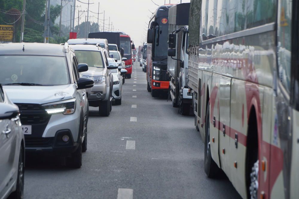 At the same time, on National Highway 1 (section from Binh Dien bridge towards the Mekong Delta provinces), streams of motorbikes carrying bulky luggage lined up for a long time. At many times, vehicles moved slowly, even stopped completely.