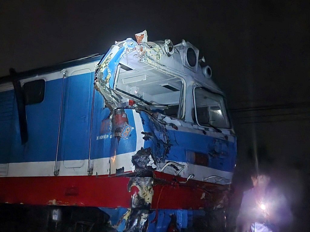 Accordingly, train SE8 locomotive 918 (SG engine) pulling 14 cars, driven by train driver N.P. B (born 1989, residing in Huong Thuy commune, Hue city), train conductor N.D. Q. When traveling through the above area, it collided with a container truck with temporary license plate T11-282. xx driven by P.V. T (born 1969, residing in Kien An commune, Hai Phong city) in the West – East direction.