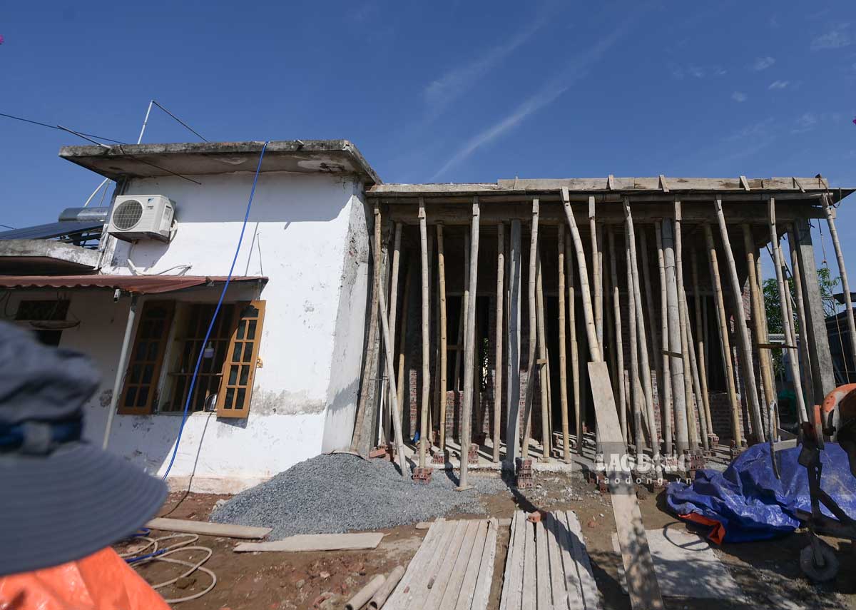 Suffering the damage of the storm, the level 4 house of Ms. Trinh Thi Soi's family (born in 1952, residing in Quynh Nhat commune) completely collapsed, her husband, Mr. Nguyen Van K, died on the spot, Ms. Soi was seriously injured and had to be treated at the hospital. However, after nearly 2 months, thanks to the support of the Ministry of Public Security and the People's Committee of Ninh Binh province, the 45m2 flat-roofed house was built to replace the collapsed house of Mrs. Soi's family, which is gradually being completed.