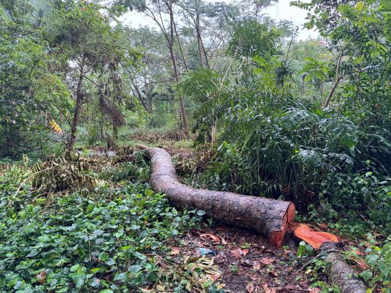 Along the path leading to the mini soccer field, many ancient acacia trees continue to be cut down. Some wooden trunks are still lying in open space, others are temporarily covered with leaves.