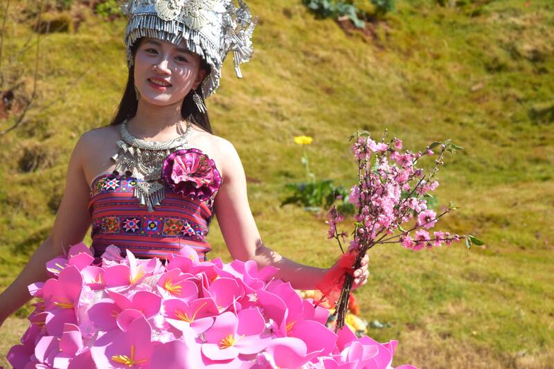 Hoang Hai Ngoc, a student at Moc Ly High School, shared: "This is the first time participating in a real-scene fashion competition, I am very proud to be introduced to the beauty of Moc Chau through ethnic costumes and the homeland flower season.
