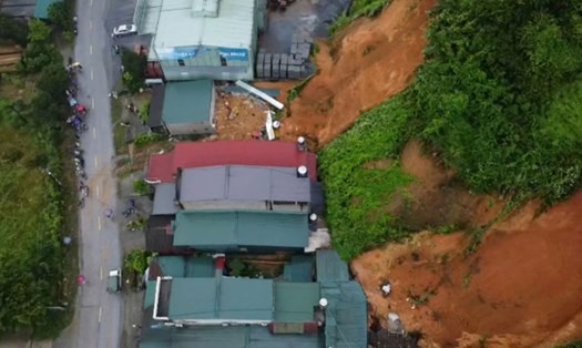 Earlier, at around 3:00 a.m. the same day, a large amount of rock and soil from the mountain suddenly collapsed, completely burying the house of a household in Dang Con village, Au Lau commune, Yen Bai city.