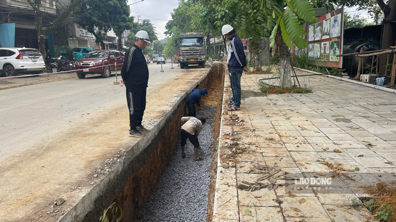 In early November, the construction atmosphere on Nhac Son Street (Lao Cai Ward) became vibrant. Along the route, many workers and machines are working continuously to keep up with the progress.