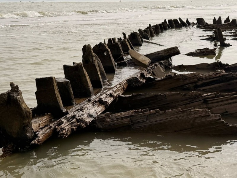 After being first discovered in late 2023, the ship was completely buried under the sea sand. However, the recent heavy rains and floods caused by storm No. 12 (storm Fengshen) caused serious landslides, causing the boat's body to rise more clearly.