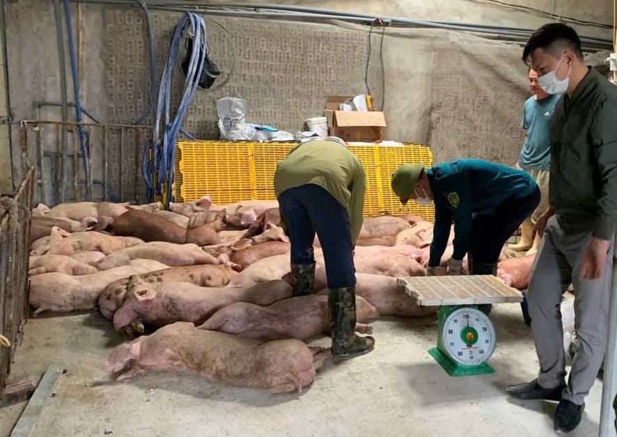Specifically on March 11, in Phu Long and Rang Dong communes, new outbreaks continued to arise, requiring the destruction of 249 pigs with a total weight of over 8.5 tons.