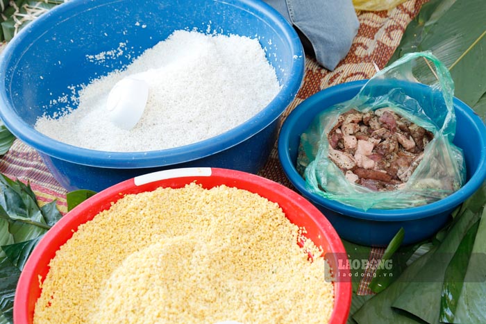 At the program, a large number of volunteers and philanthropists together prepared materials such as dong leaves, sticky rice, pork, green beans...