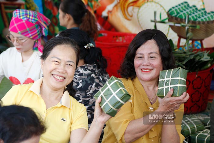 Participating in the cake wrapping stage, Ms. Quang Thi Xuan (Phu village, Thanh An commune) said: "This is the first time I have participated in a large-scale and meaningful banh chung wrapping program. I am very happy to contribute a part of my efforts to bring the Tet flavor to those less fortunate.