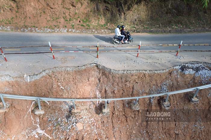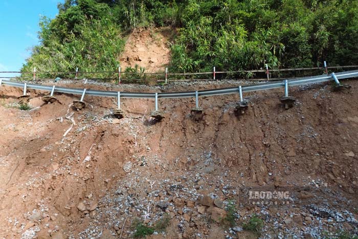 In particular, at Km 243 (Trai Bo village, Na Son commune), the negative slope section was seriously eroded, eating into the water and losing half of the road surface and has not been treated. This location creates a dangerous "trap", with the potential risk of traffic accidents at any time, especially at night or in slippery rain.
