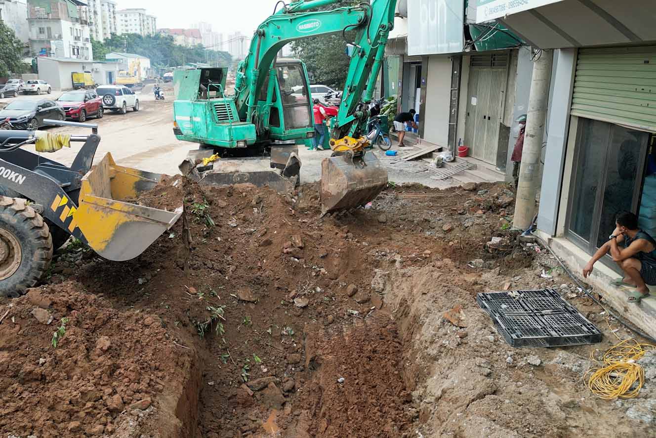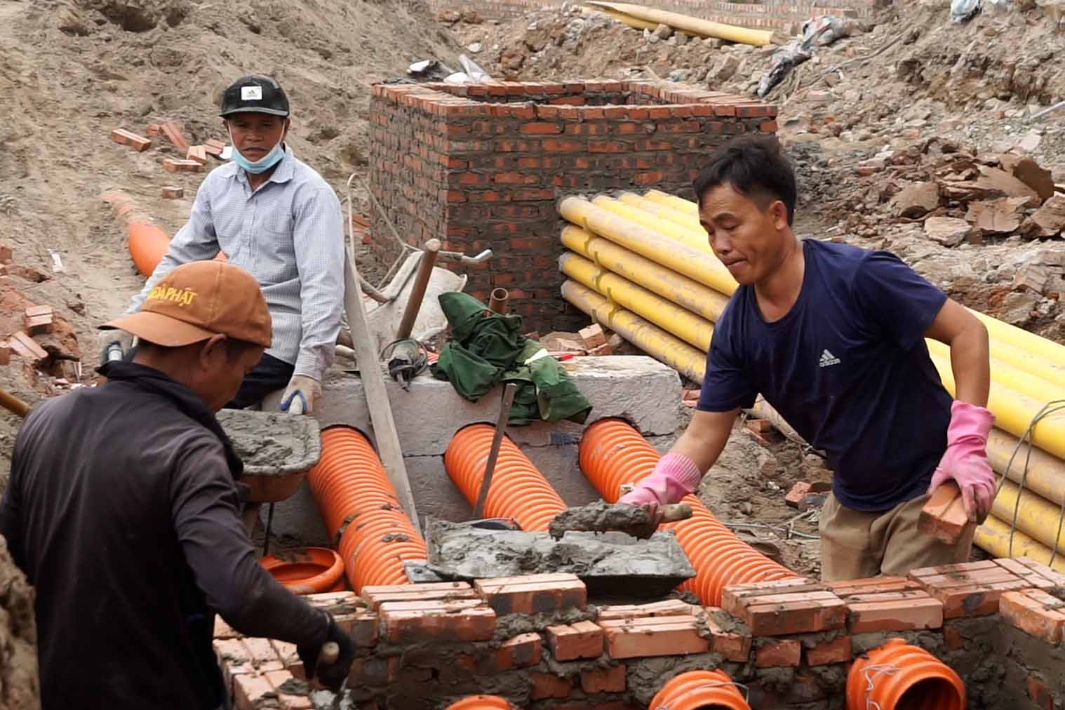 At the construction site, construction teams are simultaneously carrying out technical items such as drainage, power lines, and telecommunications lines.