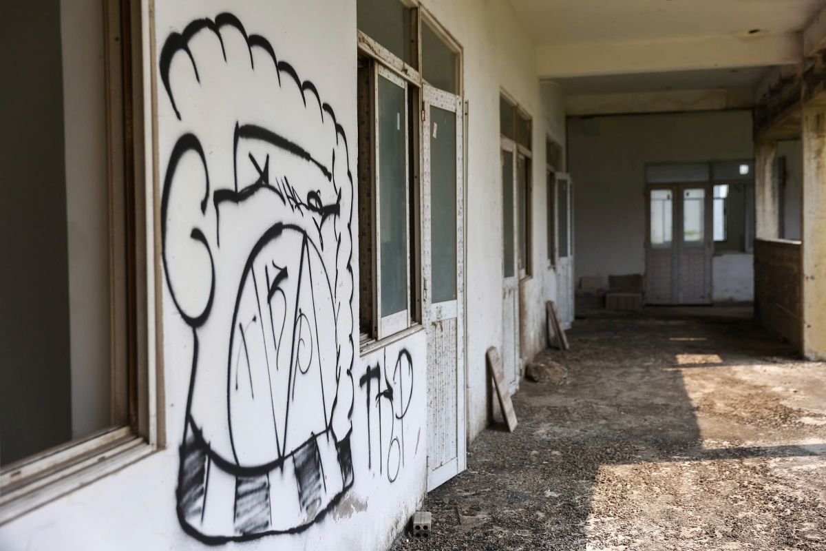 Notably, many classrooms, although they have basically taken shape, paved the floor, installed doors, are now degraded, moldy and cracked walls. Some areas are flooded with water, garbage, mud and graffiti due to the lack of security forces on duty.