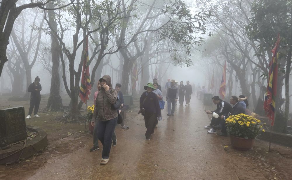 According to reporters of Lao Dong Newspaper, on February 25 (ie, the 9th day of Tet), although the weather was drizzly, thousands of people and tourists still flocked to Am Tien Temple (on the top of Nua mountain), participating in the ceremony of opening the heavenly gate, offering incense, sightseeing and praying for good luck at the beginning of the new year.