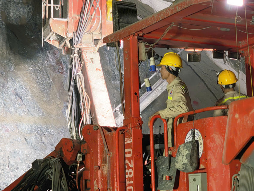 Each meter of tunnel being dug is the result of a tightly coordinated production line: drilling, blasting, excavating, spraying concrete, reinforcing tunnel arches. Just one step slow down, the entire progress will be affected," Mr. Tue said.