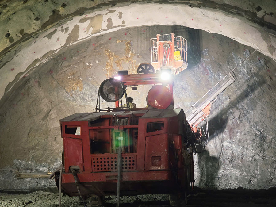 In the heart of the mountain, where the humidity is high and the temperature is always lower than outside, each drill bit still steadily goes deep into the rock.