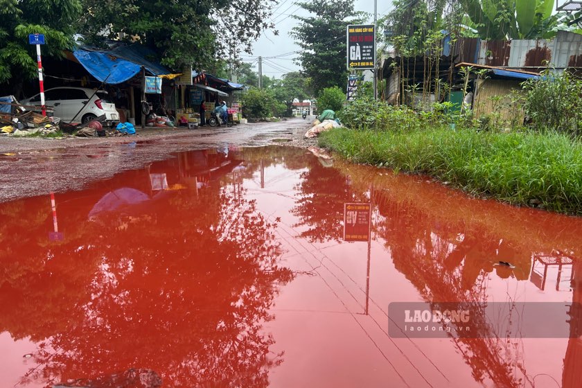 According to a source from Lao Dong Newspaper, on November 2, on the route of Luu Xa Station (Tich Luong Ward, Thai Nguyen), a layer of red liquid appeared covering the road surface, stretching through many residential areas.