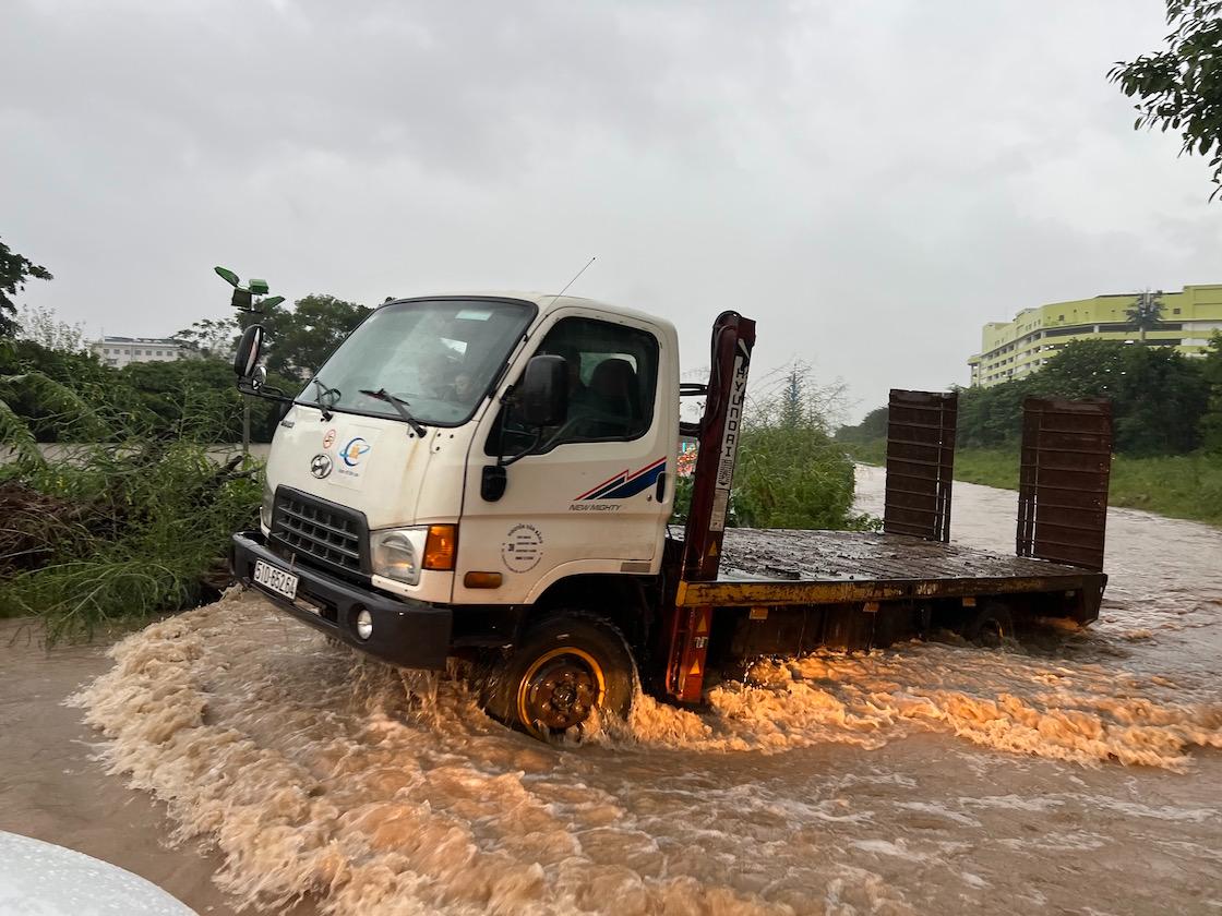 "When passing through Thang Long Avenue, the area near the headquarters of the Vietnam Coast Guard, although there were only a few hundred meters away from the car parking space, because the water was too deep, I was afraid the car would stall, so I had to go up to Quoc Oai, then find a way to turn around," said Mr. Tuan.