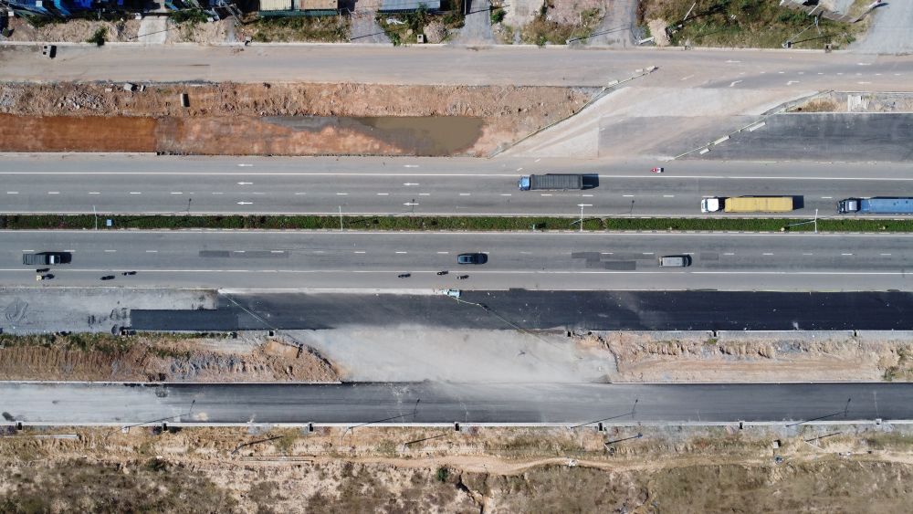 The highway traffic item has been compacted, and the main stone crushing layer has been constructed. Currently, the drainage culvert item is being constructed.