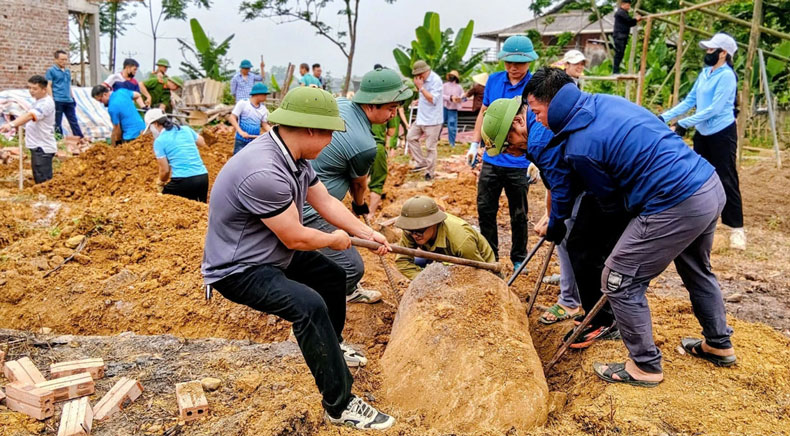 Instead of letting obstacles continue, the local government has chosen a sharing approach: building houses of gratitude, mobilizing socialized resources, and calling on people and organizations to join hands to support labor days, materials, and help families relocate.