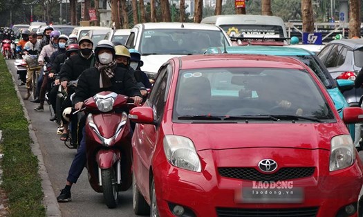 Nguyen Xien, Khuat Duy Tien, Nguyen Trai (Thanh Xuan district), Lang, Nguyen Ngoc Vu, Xuan Thuy (Cau Giay district)... and many other roads in Hanoi are experiencing serious traffic jams, even on weekends.