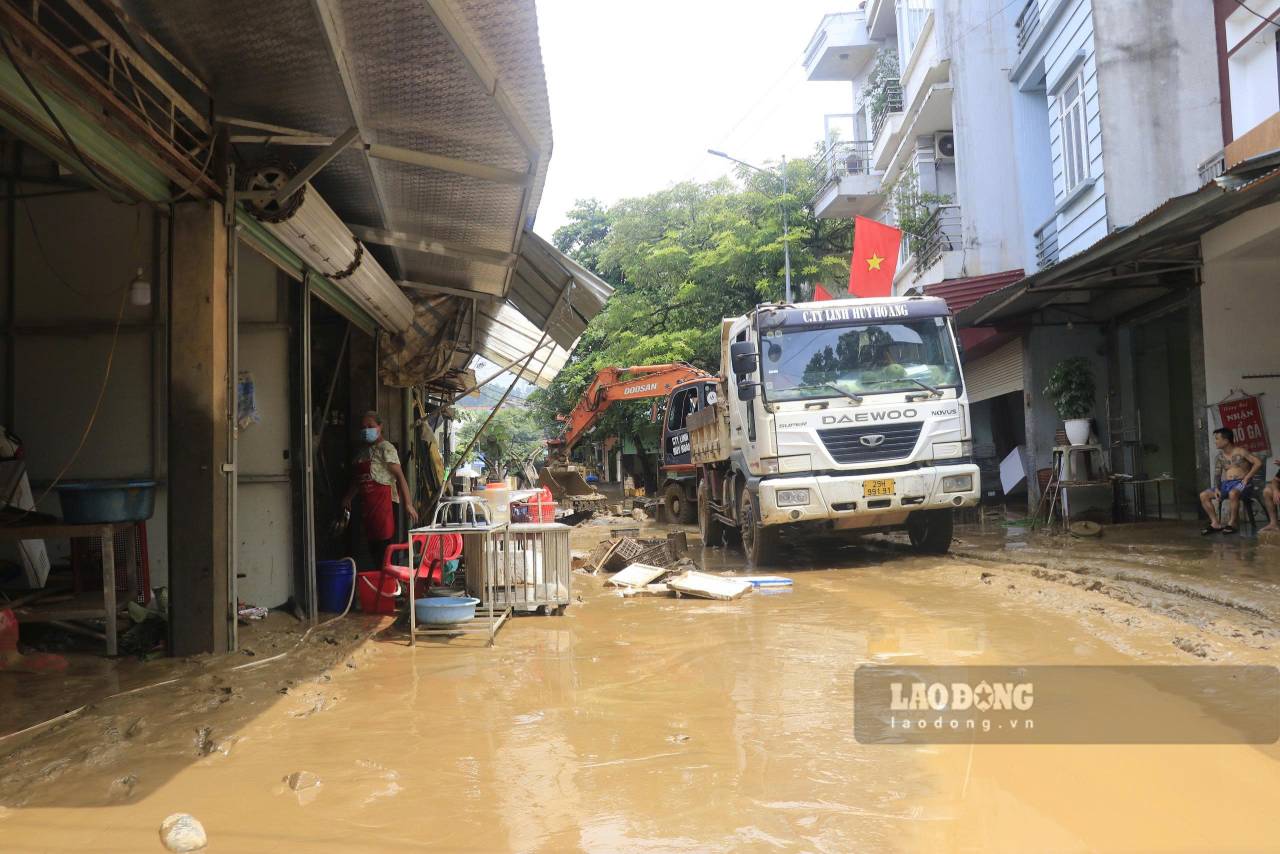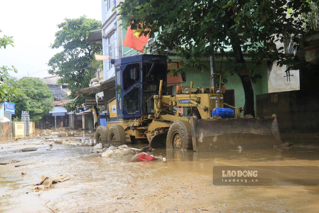 In addition, machinery vehicles, trucks, road rollers, and coaches have been mobilized to scrap the 30-40 cm thick layer of mud on central roads for traffic and people to operate again.