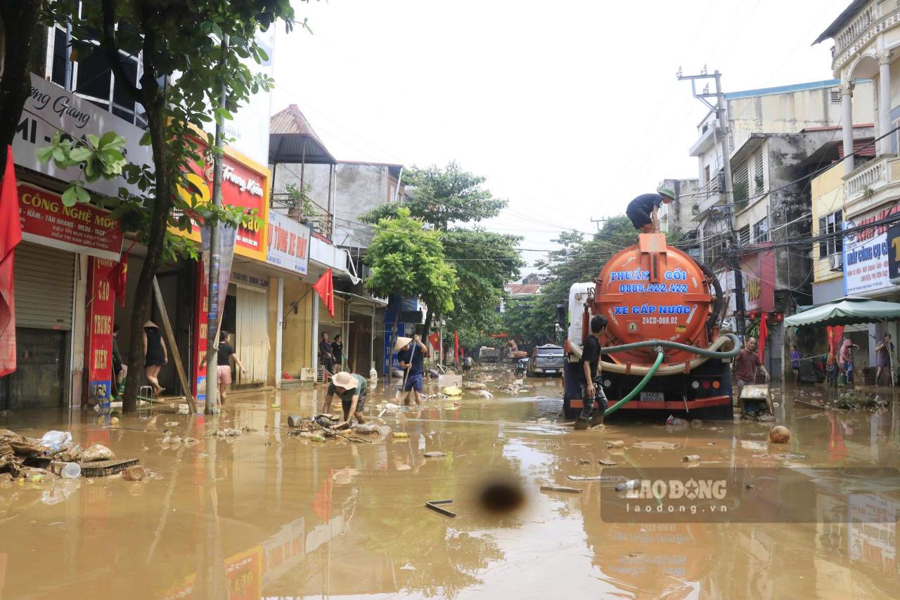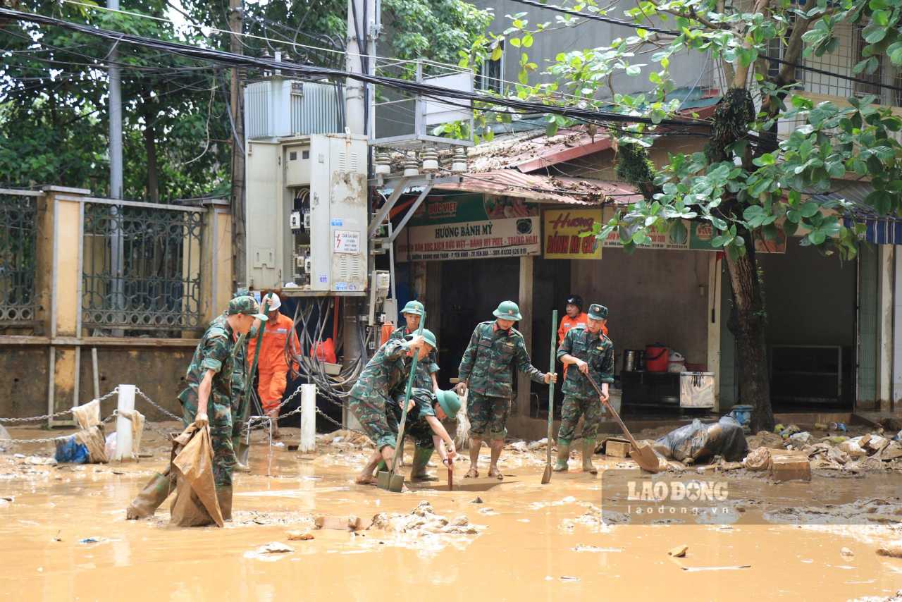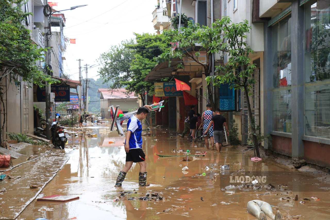 Talking to reporters, Mr. Phung Tien Thanh, Chairman of Yen Bai Ward People's Committee - said that after the water receded, mud and garbage were swept away into people's houses due to floods, there were many public works, so people on Thanh Nien Street, Hoang Hoa Tham Street, Yet Kieu Street... are actively cleaning their houses.
