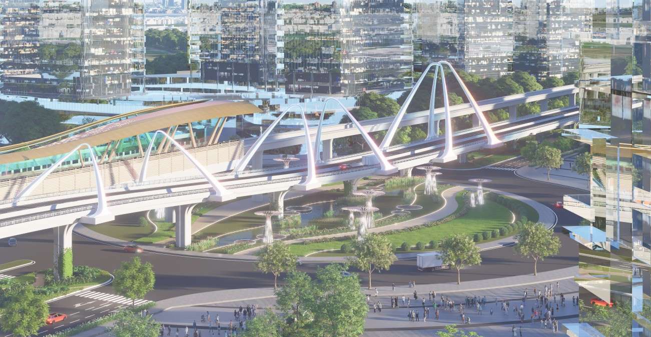 Along with the elevated road, parallel roads will be built on both sides of the ground, with 3 lanes on each side, a maximum speed of 60 km/h, meeting the needs of urban traffic and people's livelihoods along the route.