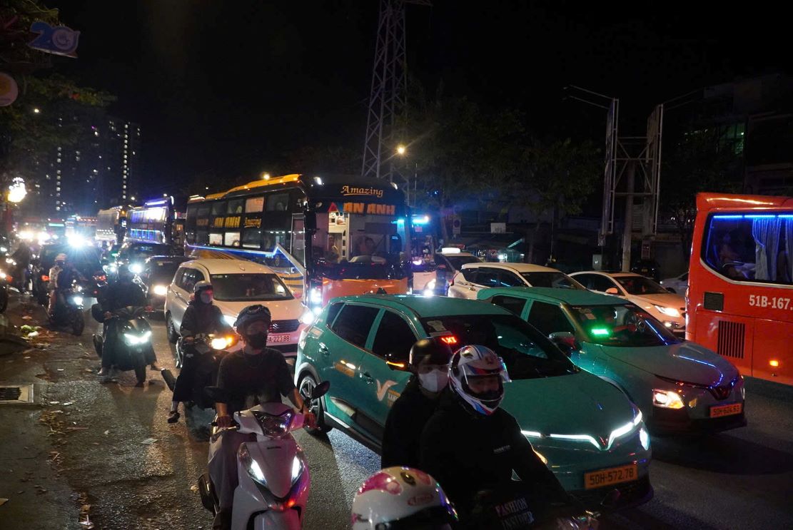 Mr. Nguyen Van Hoang (from Can Tho) said that his bus departed from the afternoon of February 22nd but could not enter the station until after 11 pm due to prolonged traffic jams.