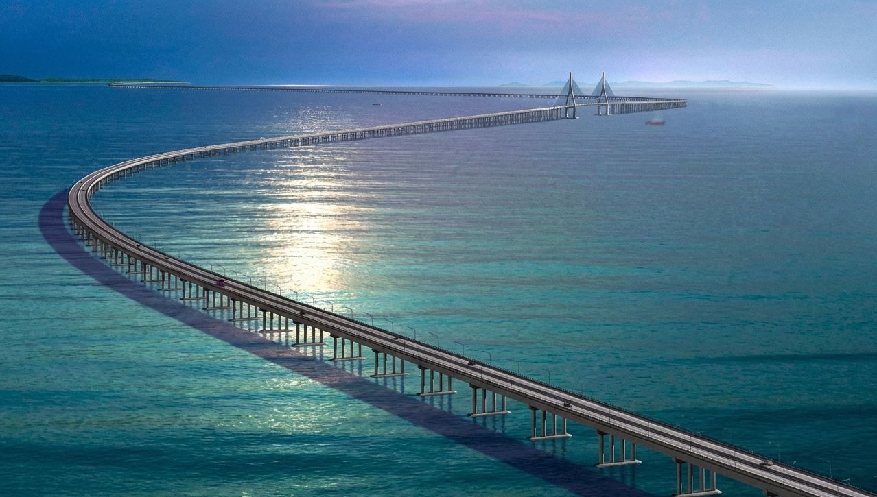 The entire route is designed with main items being access roads, overpasses combined with submersible tunnels. The transition section between the bridge and tunnels through two artificial islands is built in the middle of the sea.