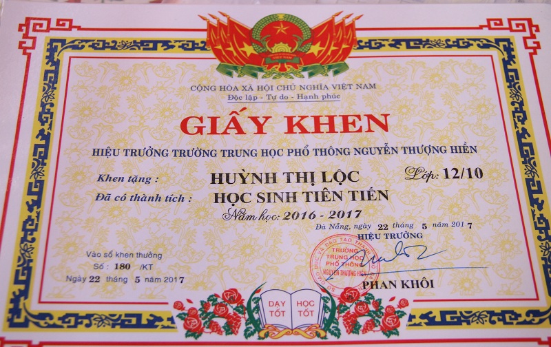 | Nhiều năm liền, cô bé "hạt tiêu" nhận được giấy khen của trường. Ảnh: Hoàng Phương |