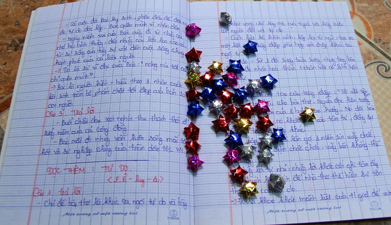 Chia tay cô bé Lộc với ước mơ thật đẹp, chúng tôi ra về khi mặt trời đã buông những tia nắng cuối cùng. Lần mò trở lại căn phòng trọ chật chội, ẩm thấp, Lộc lôi mớ giấy đủ màu sắc trên kệ sách xuống, gấp hình những con hạc giấy, ngôi sao để kịp giao cho khách tuần tới. Bữa tối hôm nay của em hình như là gói mì tôm chay giá 2.500 đồng mà chúng tôi thấy em đã để sẵn trên bàn…