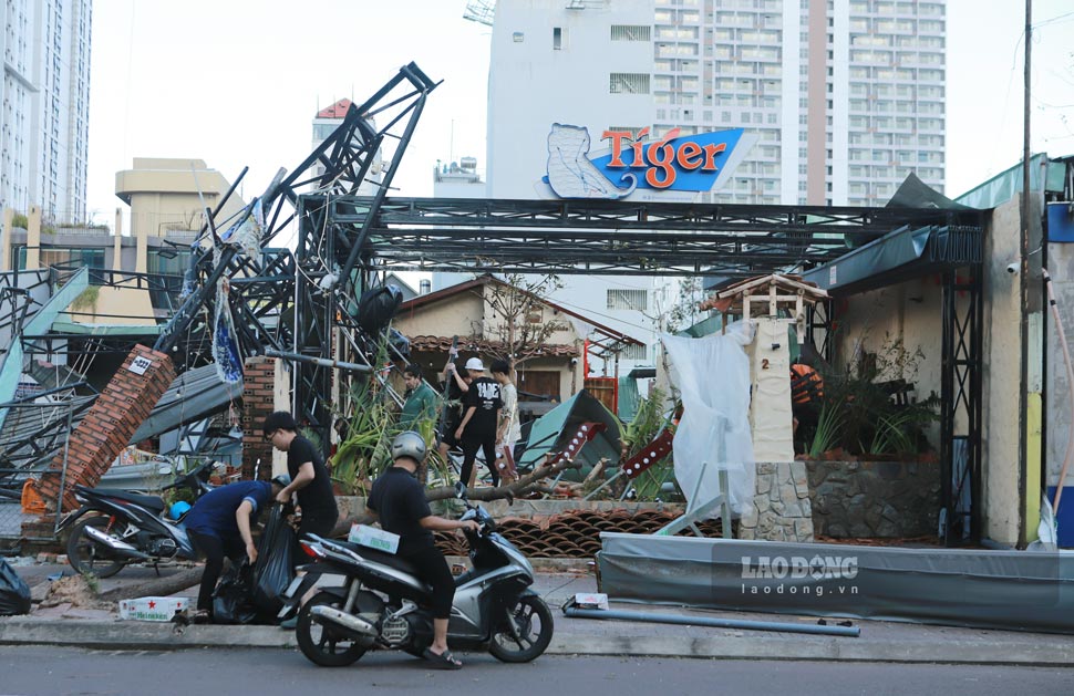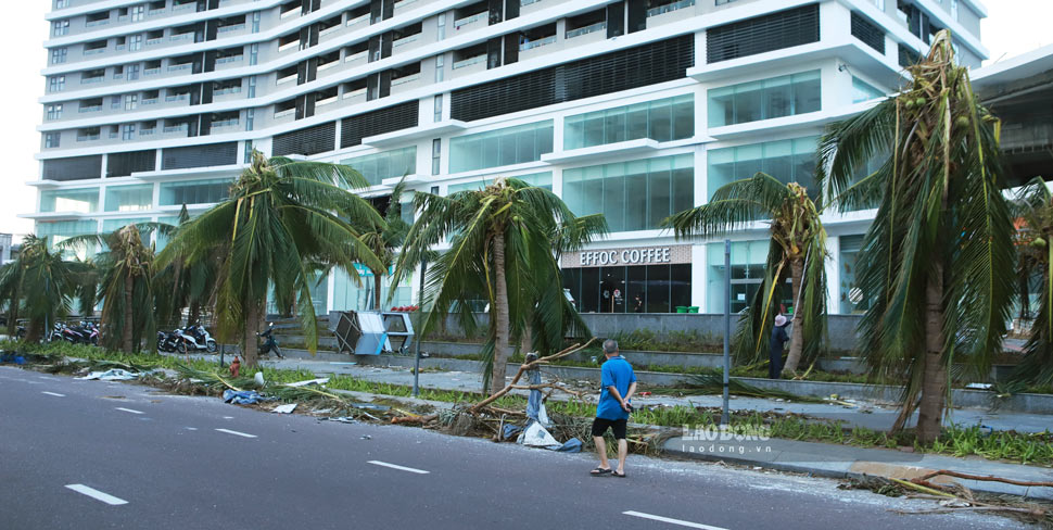 After 2 days of struggling to overcome the consequences of storm No. 13, Quy Nhon center (Gia Lai) has not been able to "revive" the existing pace of life. Many areas still have power outages; restaurants, shops, works and houses are still in disarray and dilapidated; trees are uprooted and broken all over the streets - all of which seem to expose the terrible destructive power of the storm, even though the authorities have made every effort to overcome it.