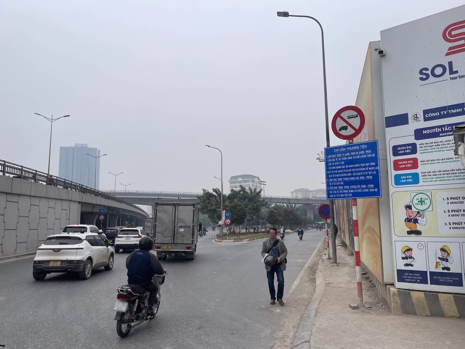 The operating range of road vehicles is limited from the inside of the road encroaching into the city center of the following roads: Pham Van Dong street → Dien Bridge, Ho Tung Mau (section from Pham Van Dong - Pham Hung intersection to Cau Dien - Xuan Phuong intersection) → Xuan Phuong → Road 70 → Right-tower of Thang Long Avenue → An Khanh intersection → Left-tower of Thang Long Avenue → Hoang Tung street (Belt Road 3.5) → Le Trong Tan street (Ha Dong district) → Van Khe → Phuc La → Buou bridge → Phan Trong Tue - Ngoc Hoi (section from Phan Trong Tue intersection to Phap Van intersection) → Ring Road 3 (section from Giai Phong - Phap Van intersection to Nguyen Van Linh street) → Nguyen Van Linh → overpass of Long Bien District Central Intersection → Ly Son street → Dong Tru bridge → Truong Sa → Hoang Sa → Vo Van Kiet (section from Hoang Sa road intersection to Thang Long bridge) → Thang Long