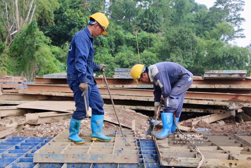 Meanwhile, at the Quang Vinh 1 bridge construction site, the foundation and welding of steel structures have been carried out, and the bridge frame has been completed.