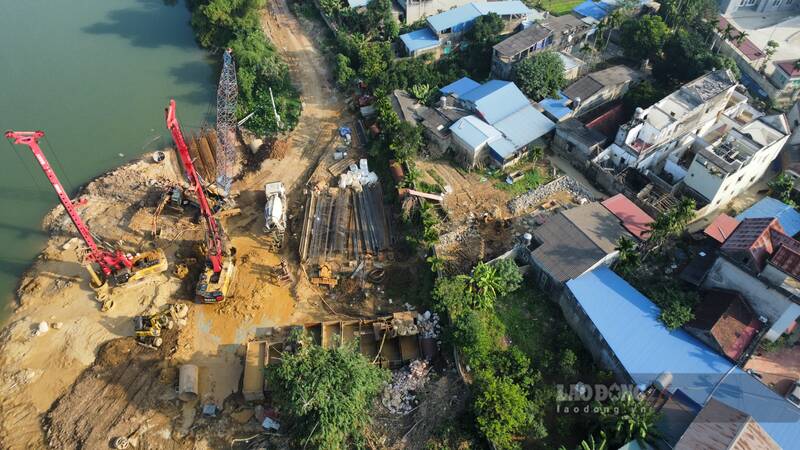 In the Quang Vinh 2 bridge construction area, machinery is deploying drilling and filling, foundation construction. Items at the project are mainly deployed in the riverbank area.